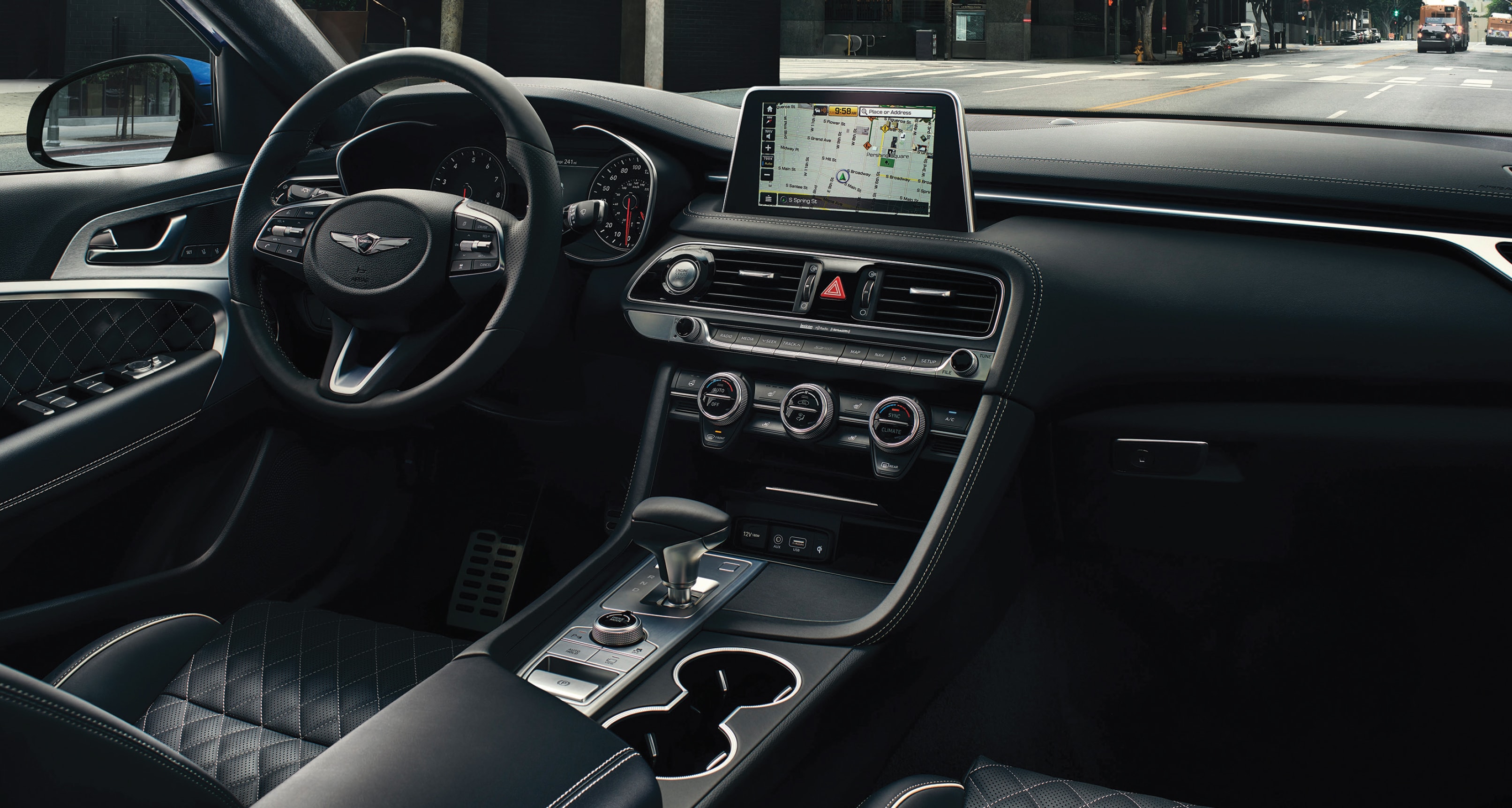 Look at the G70’s sleek lines and athletic stance. Take your place in the 3.3T Sport’s 16-way power driver seat clad in diamond-quilted Nappa leather. Grip the thick steering wheel, slide the wide sunroof open and let the light fall across the cockpit’s luxurious surfaces and textures.