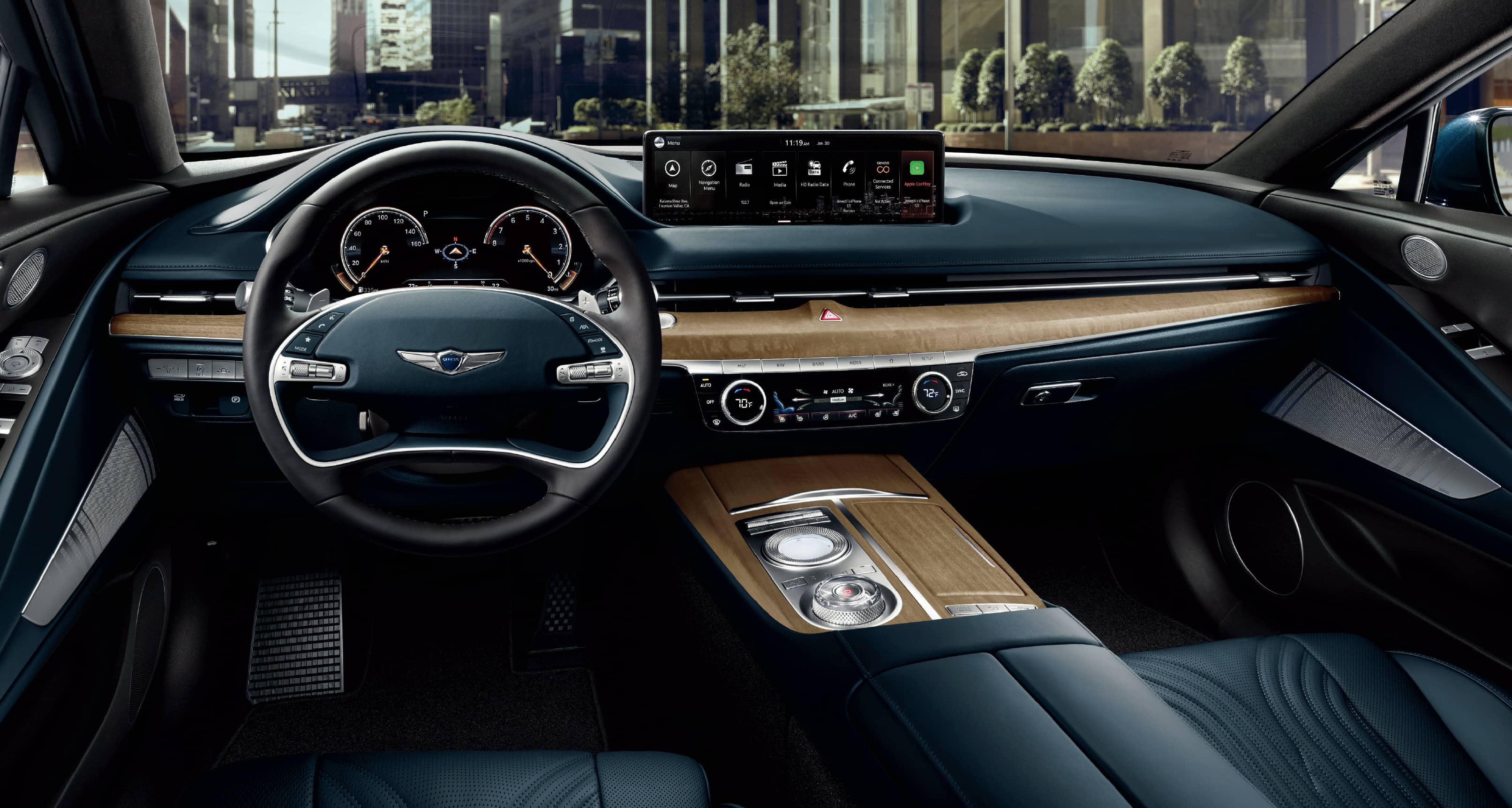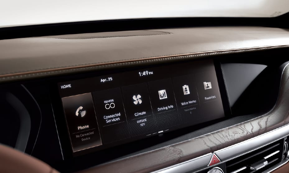 The app also lets you check your vehicle’s fuel level and includes a valet alert to help keep tabs on your Genesis. Sync the app with your calendar of events, and it can send timely updates to your phone in preparation for upcoming drives. These are just some of the ways Genesis Connected Services (complimentary for your first three years of ownership) act as your conduit to the information, services and assistance you want and need on the go.24
