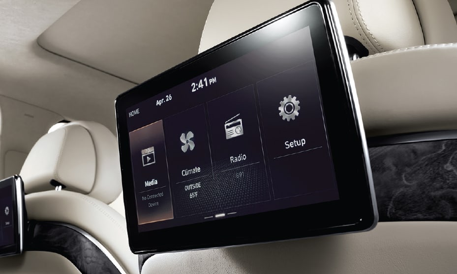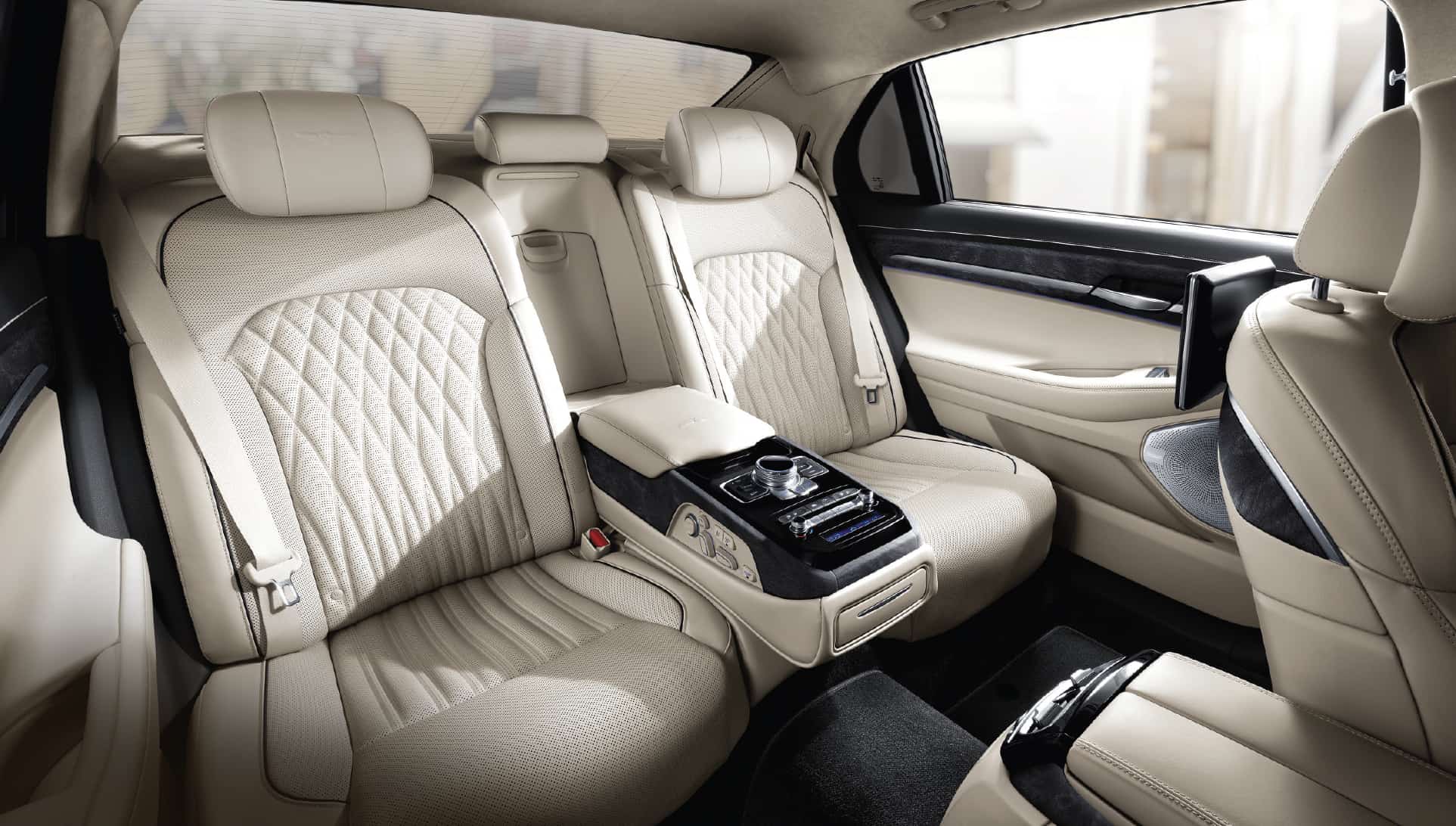 In the G90 5.0 Ultimate, the rear cabin features a 12-way power-adjustable left rear seat and 14-way power right rear seat. The right rear seat includes a one-touch relax mode that reclines to your preferred seating position. Both rear-seat passengers are entertained by dual 10.3˝high-definition video monitors that tilt and adjust to optimize individual viewing.