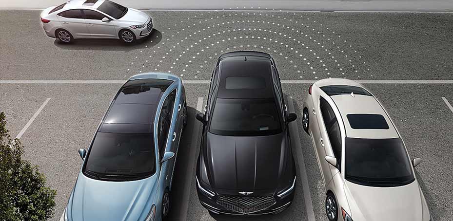 Backing out of a parking space and wondering whether there’s cross traffic coming your way? This feature warns you of another vehicle approaching from the side. If necessary, your Genesis automatically applies braking to help prevent a collision.13