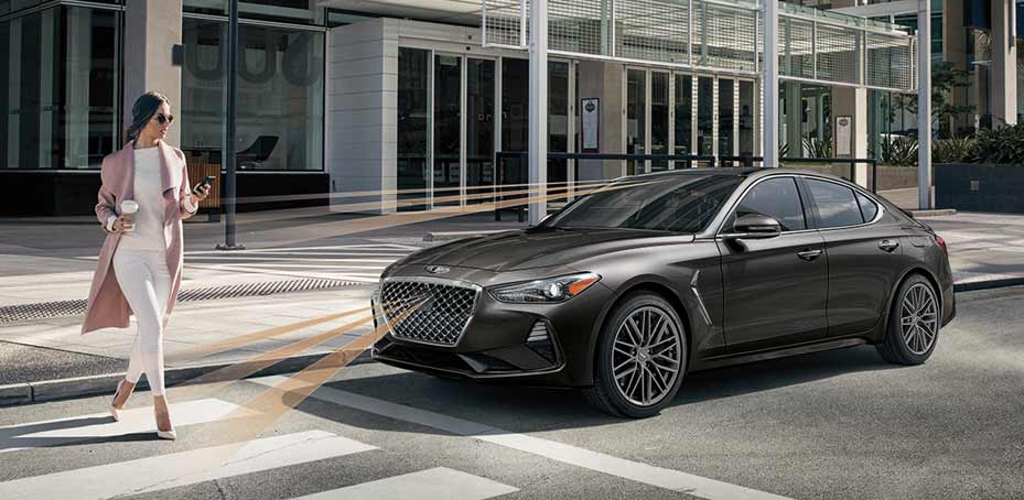 Your Genesis keeps a watchful eye on the road ahead and warns you of slowing or stopped vehicles, pedestrians and cyclists in your path. If necessary, braking is automatically applied to help avoid a collision.15