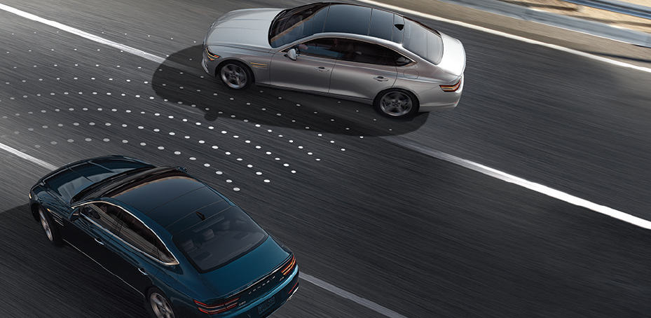 In the G80 and GV80, Forward Collision-Avoidance Assist technology now includes other innovations that help avoid drifting into the opposing or adjacent lane of traffic.17 It can also detect vehicles two lanes over that begin merging into the same lane you are moving into while changing lanes.