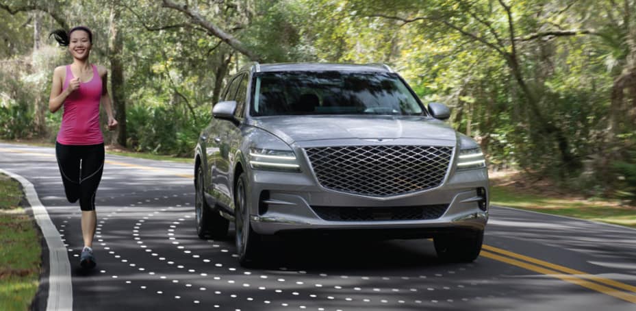When a pedestrian is detected along the side of the road, and it’s possible for your G80 or GV80 to stay in its lane, this new feature automatically initiates steering input to help position your vehicle toward the edge of your lane, giving pedestrians space and avoiding a possible collision.18